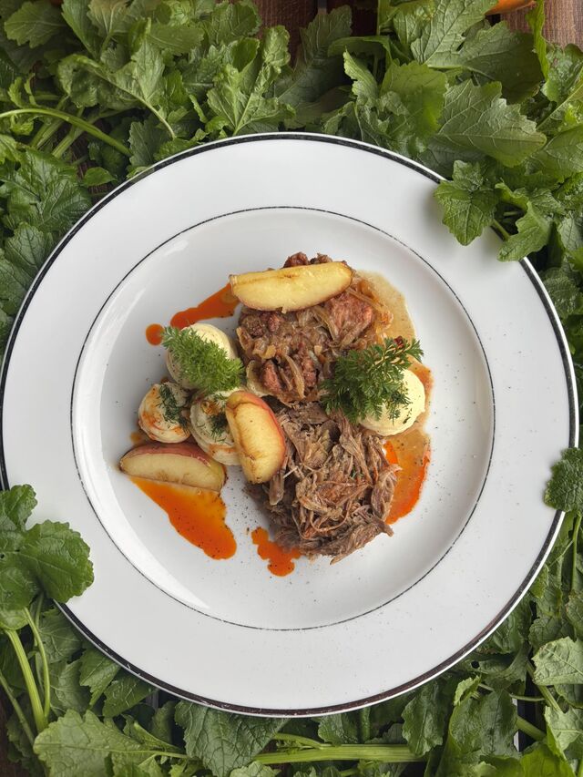 W karcie dań głównych znajdziesz prawdziwe perełki kuchni polskiej – od soczystego steku z polskiej polędwicy wołowej z grillowanymi warzywami, przez staropolskie zrazy wołowe faszerowane wędzonym boczkiem i kiszonym ogórkiem, aż po klasyczny kotlet schabowy z kością podany z kapustą zasmażaną po góralsku. Miłośników ryb zachwyci smażony łosoś z chrupiącą skórką i złocistymi plackami ziemniaczanymi czy filet z miruny w aksamitnym sosie porowym. Wśród makaronów królują domowe kopytka z kiszoną kapustą i boczkiem w miodowej glazurze, rigattoni z łososiem w sosie śmietanowym z wódką oraz azjatycki makaron z kurczakiem i warzywami stir-fry. Na deser czekają słodkie propozycje – od smażonych lodów w kokosowej panierce po puszysty suflet czekoladowy z lodami waniliowymi.